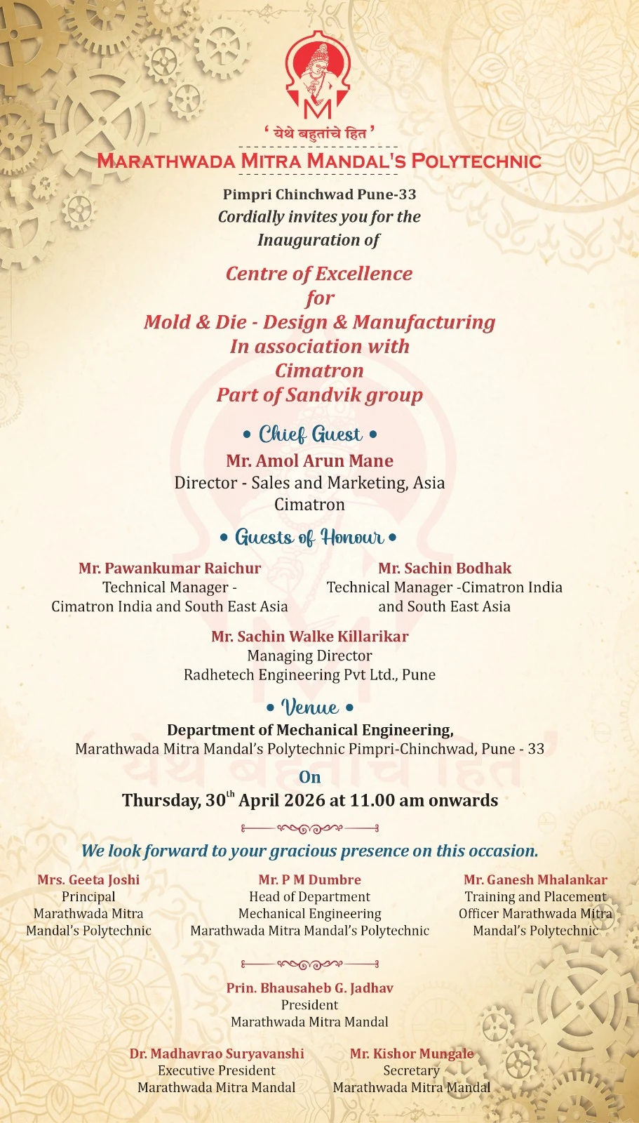 As the flagship technical institute of the Marathwada Mitra Mandal’s Education Society, we believe in a holistic approach to development. We don’t just teach academics; we cultivate the moral and ethical foundation required to shape students into true “epitomes of humanity.”