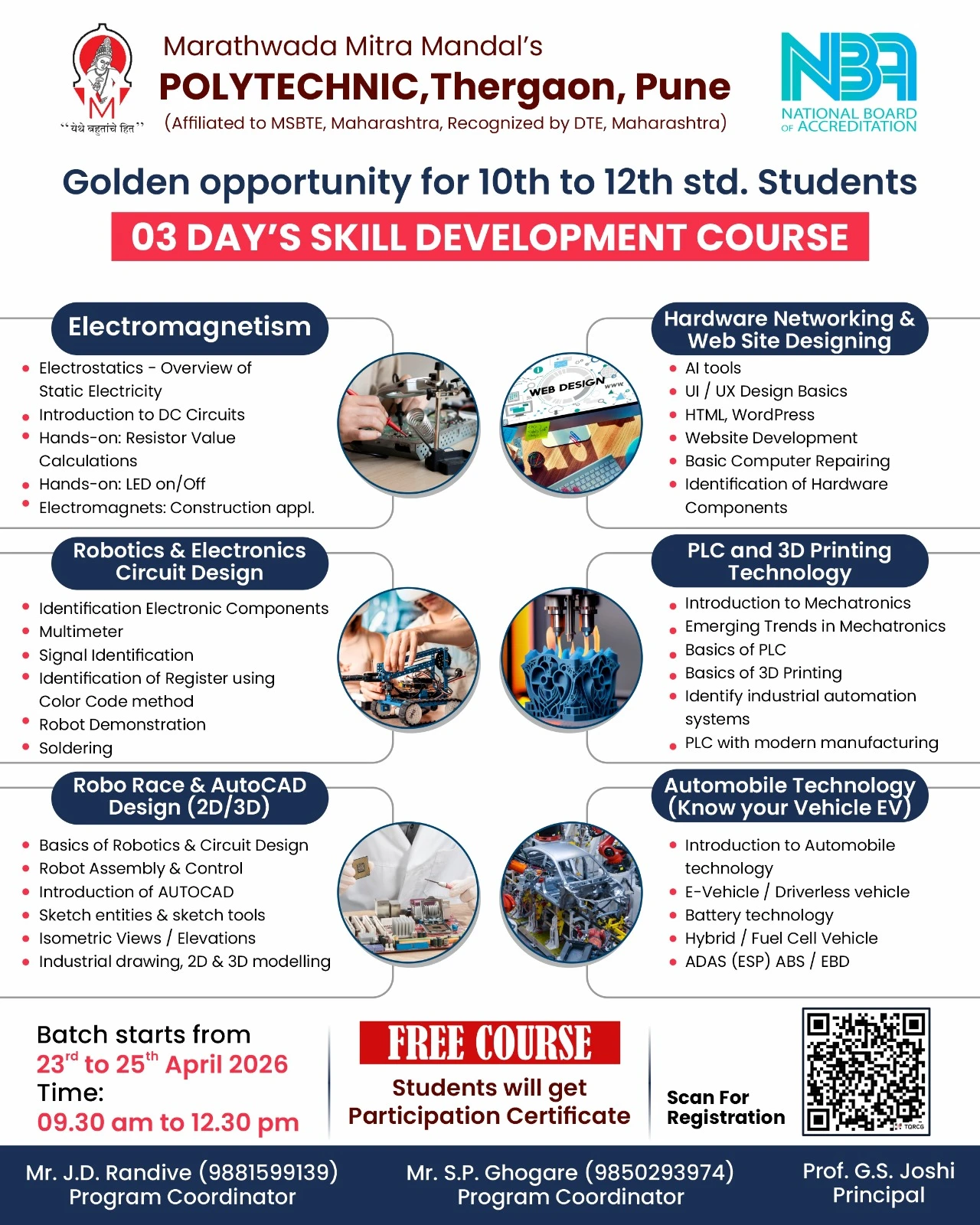 Learn Robotics, EV Technology, Web Design, PLC & more.